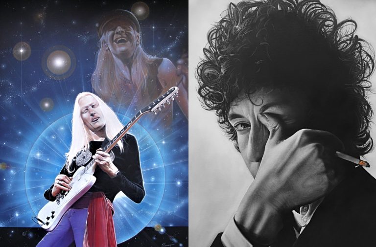 It all started when I received a call from an old friend, Brian Phelps, the owner of the legendary Toads Place in New Haven, CT, where many great artists have played over the years. Acts, such as the Rolling Stones, Bob Dylan, Billy Joel, Johnny Cash, U2, Stevie Ray Vaughan, Bruce Springsteen, David Bowie, James Taylor, Muddy Waters…the list goes on and on. Well, Brian asked me to paint some murals of some of the artists who had performed there, so that’s when I began to paint music icons and began to paint some of my favorites. I love painting music people and the joy I get from a fan who appreciates their favorite artist being portrayed on canvas. As a musician, I never thought I would be painting someday, but it all makes sense now. I started out as an artist who became a musician. Now, I’m an artist, painting musicians. I traded in my sticks for some brushes.